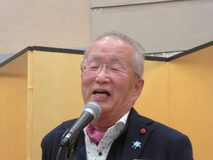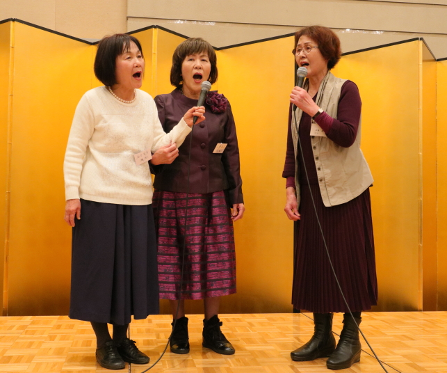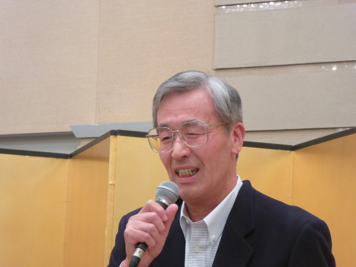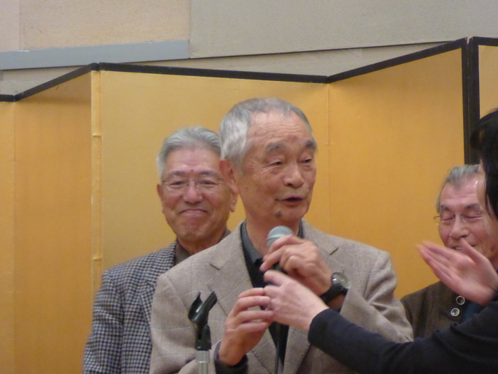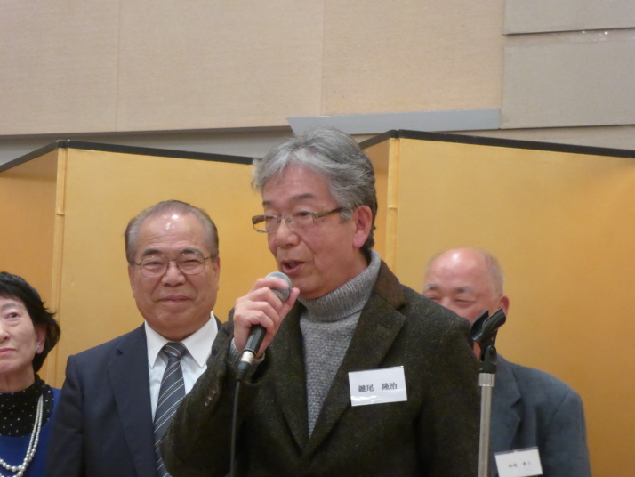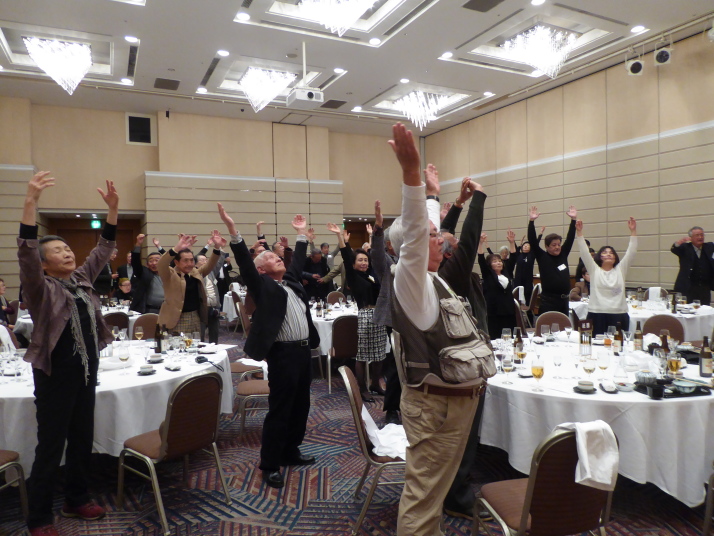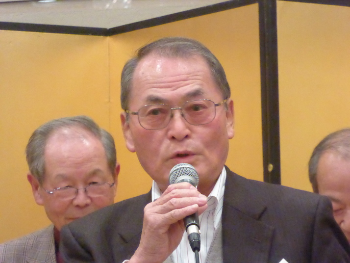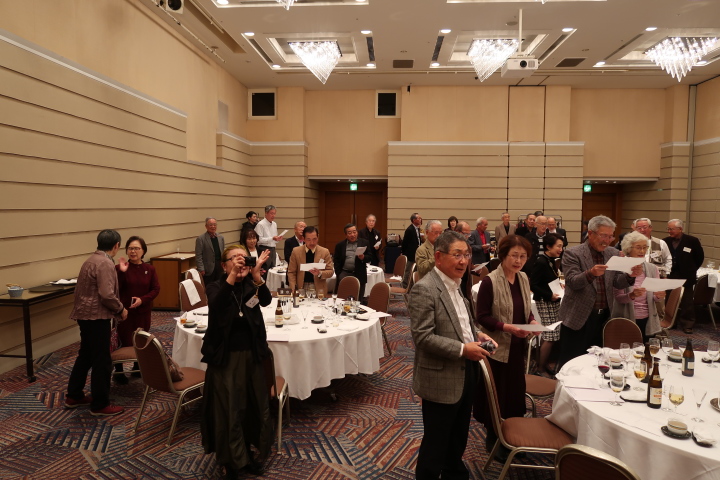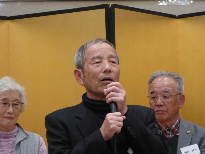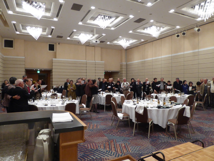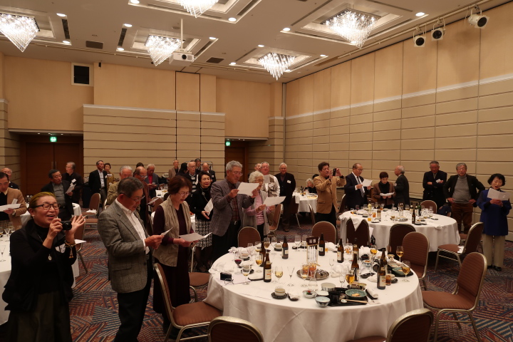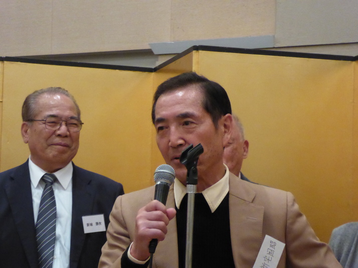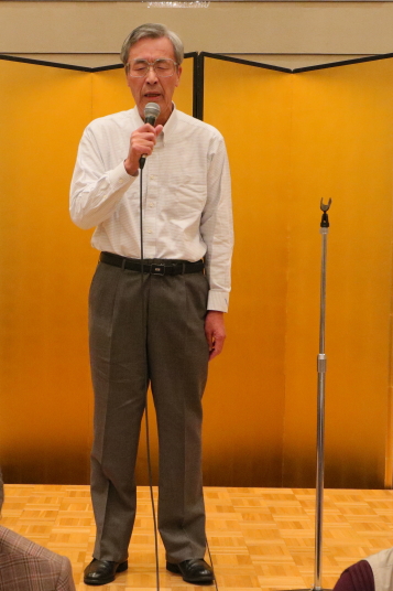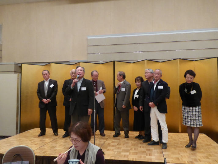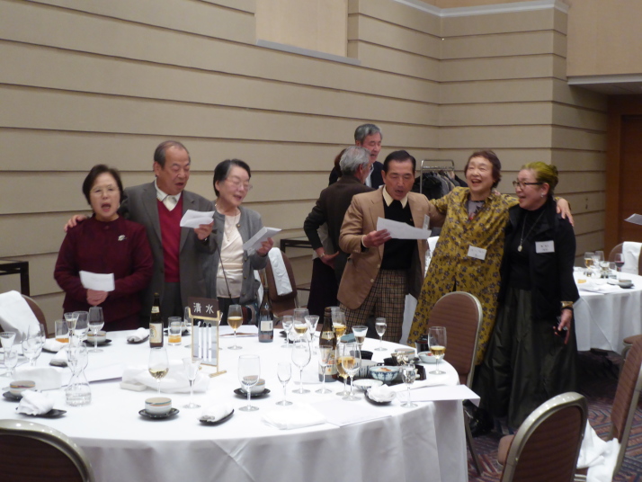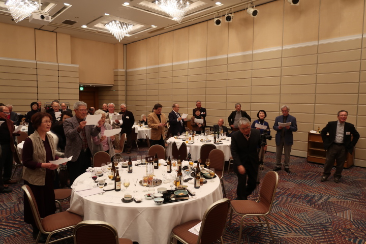 前半は、食事を楽しみながら参加者の近況報告等を聞き、三津田賛歌の合唱で中締めです。