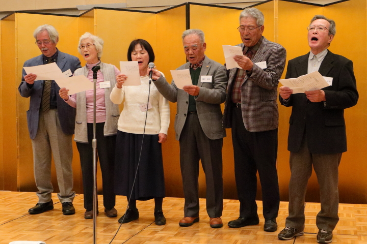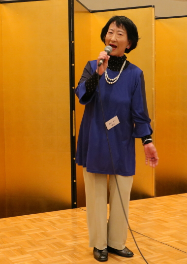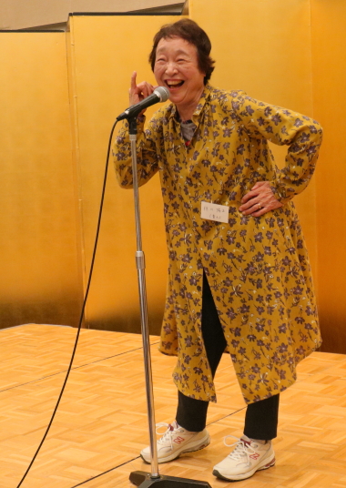 後半は、笑いヨガから始まり、クラス毎の自己紹介、続いてステージ上では歌や詩吟の披露、