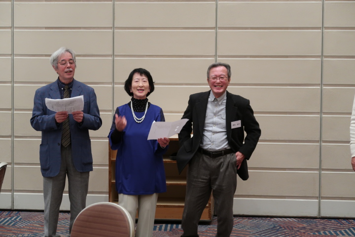 締めはお決まり、藤沢君のリードで高校三年生を歌い楽しみました。