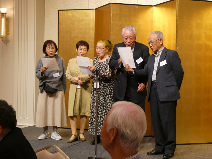 5組では出口(穐田)紀子さんが「浜辺の歌」を披露して楽しいクラス紹介でした。