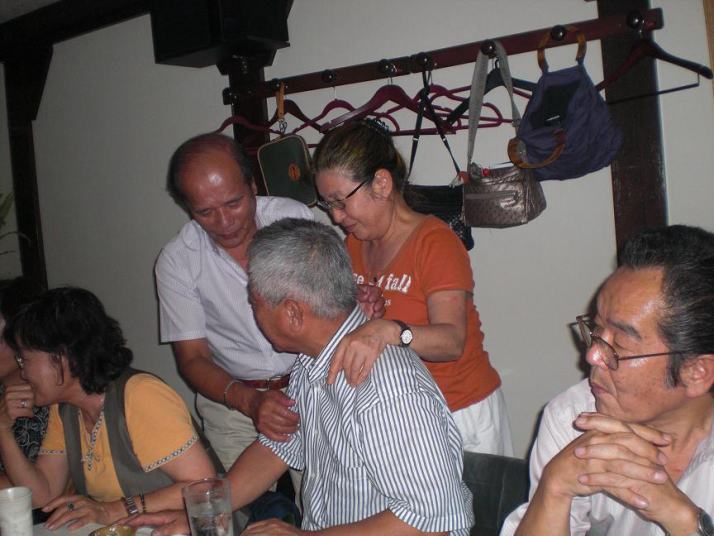 3.同期会には久し振りの参加の藤本君、 腰痛を抱えて広島からやってきた太田君. |