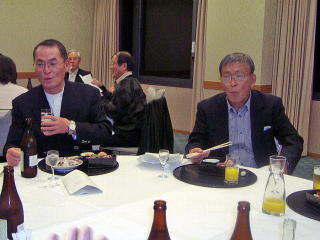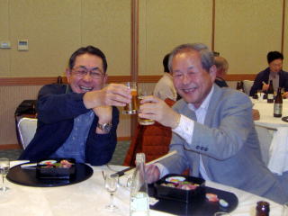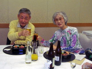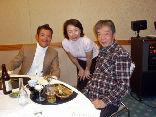 社史編集の仕事を最後にリタイアーする新宅君 さて関西在住のいつもの面々はいつもスリムな幹子さん 頼もしいメンバーの竹並君高木君 日頃は模範的おばあちゃまの信子さん 坂村君も第二の職場の今がとっても満足 談笑中の油谷君はいつも穏やかな方です 鉄と共に過ごした岡崎君はしぶい喉をご披露 司会担当の改田君はフリーとなられたようで関西会のお世話に復帰よろしくお願い致します いつもは学生に恐れられている盛男先生は切符の手配で走り回って下さいました 美子さんこべっこさん浪ちゃん元気です☆☆☆さてさてお待たせいたしました!オオトリは故郷から参加の祝さんと中野さんのお二人です〜素晴らしく晴れやかな笑顔で会場内をパワフルに華やかに盛り上げて下さいました サンキュー!
