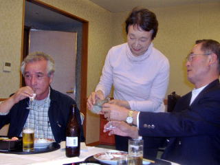 各テーブルでは乾杯 カンパーイ!心優しい陽子さんのお酌で恐縮の柚澤君