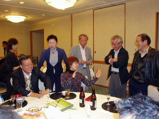 故宗像顧問の後を引き継ぎ邦子さんがHPのお世話をして下さるようですよろしくお願い致します 東京からは西本君大企業の役職を終えられて第二の職場で奮闘中 鍵尾君は宇治にお能を見学に行かれ充実した午前中を過ごされた由 名誉顧問?の湯澤君まだ現役です 陽子さんは名古屋から〜お茶目さんぶりはちっとも変わりませんネ 二井内君は2日間の錦秋の京都を満喫 マダムぶりに磨きのかかる百合子さんは優雅 近況報告で鳥居原君がマイクを握るとすかさず「3分間だぞー」の声がかかり会場は爆笑いつも真摯な話題提供でつい長くなってしまうのです