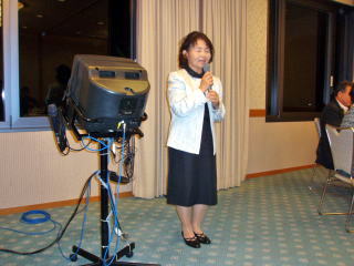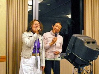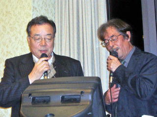 ♪8時になってカラオケがスタート 邦子さんの「白いブランコ」を皮切りに盛男君が西本君をひっぱっていって二人で「おまえに」を熱唱 「サントワマミー」の弘子さんと陽子さんに大拍手 その他皆様相当年季が入っているご様子 時間が全然足りません 最高潮はバックコーラスも見事に鳥居原君と美女達 楽しませて下さってありがとう!尚カラオケは美子さんが係りの方と一緒に上手に進行して下さいました、美子さんご苦労様でした♪
