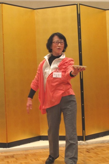 ここ数年の体調不良が、ヨガと皿回し体操体操で改善した!と、見事な体操をご披露下さいました。 |