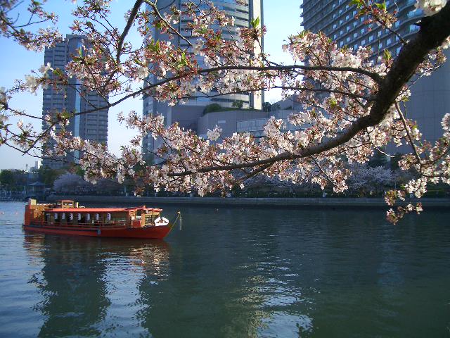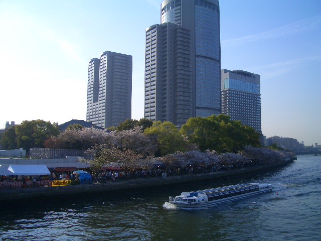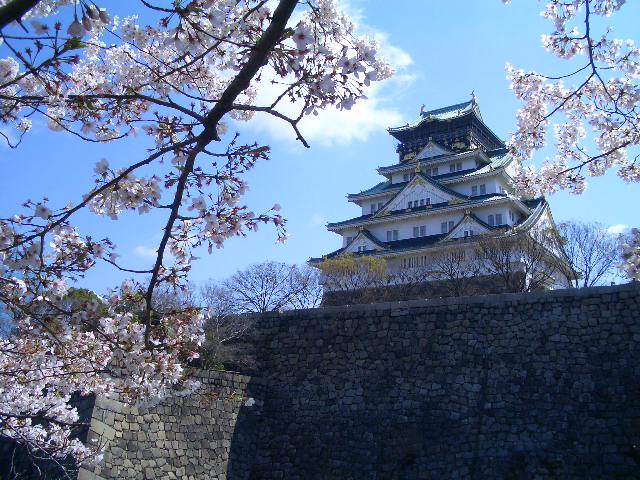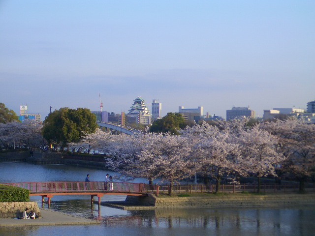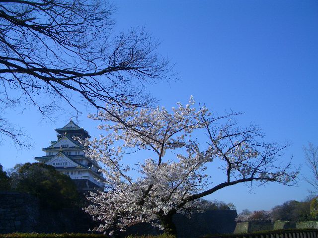 実は、これより前にHPに::掲示されていた写真を拝見して、10日に、大阪城の桜を見に行ったのですが、今年は、開花してからの時期が長かったので、まだ十分綺麗で、途中電車から見た大川端の桜もすばらしく、 |