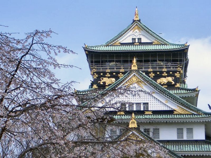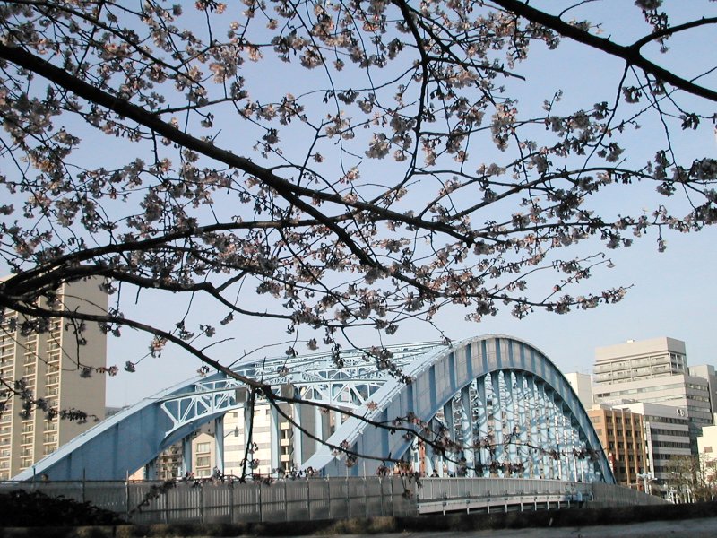 | 天守閣正面の桜 一本のみ5分咲きです | 大川(大阪と兵庫の水がめである淀川の支流、中之島にそそぐ)の桜並木 | ||