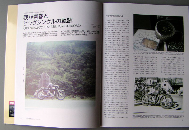 | 春の夜、机の上に置かれた黒焦げのスピードメーターを眺める度に、私はなつかしい愛車の排気音を聞く思いがする。それは、当時まだ学生だった頃の私が愛用していた英国製 | マチレスG3L(単気筒350cc、1941年型)のSMITHS製クロノメトリック・スピード メーター(フルスケール90マイル。30マイルに白線入り)なのだ。 |