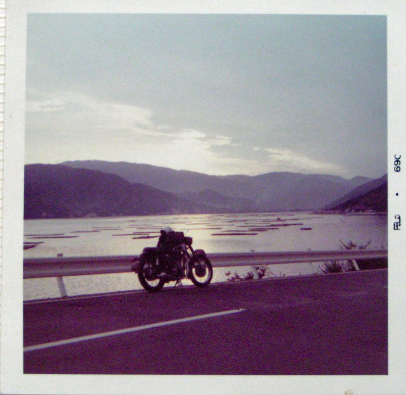 一方ではこれ程にも愛らしいマシンなのだが、ひと度、別種のライダーの手に渡れば、その瞬間から互いに群がり傷つけながら暴走する怪物に変わってしまう。夢みるライダーにとってこのマシンの変身ぶりはなんとも悲しい限りである。 ところで、はた目にはいかにも孤独な存在に見える長距離ライダーだが、実際の旅に出れば世界中到る所に仲間が満ちあふれている。不思議な話に聞こえるかもしれないが、互いにすれ違う長距離ライダーは瞬間のうちにお互いの存在を確認し、親愛の情を込めた合図を交しあっている。バスや電車の運転手同士が交す片手の合図に似たものだが、旅先で初めて出会うライダ−同士が、どちらからともなく自然に交す一瞬の友情である。時代を反映してか、最近の若者の間では2本指を出すピースサインもすたれてしまったが、昔気質の長距離ライダーは左手を斜め前にチラリと上げて、小気味よい挨拶を残してゆく。夏の朝、ツーリング用の荷物を載せたライダー同士が、すれ違いざまそうしたサインを交している姿は、一般の人の目には暴走族仲間が全国を走り回っているくらいにしか映らないのかもしれない…。 |